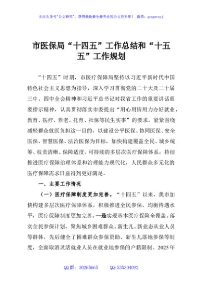 / 市医保局“十四五”工作总结和“十五五”工作规划