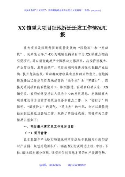 / XX镇重大项目征地拆迁迁坟工作情况汇报