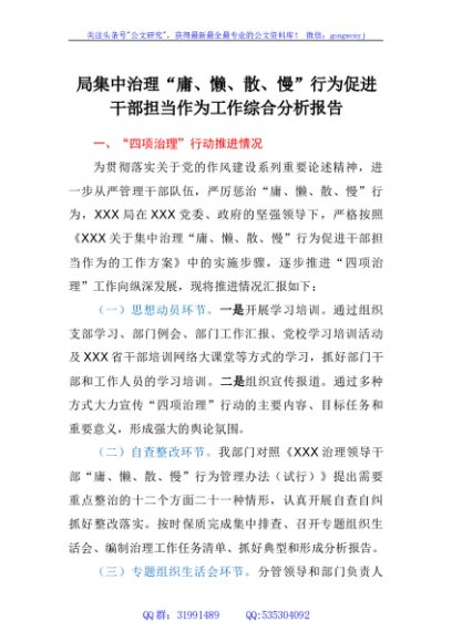 / 局集中治理“庸、懒、散、慢”行为促进干部担当作为工作综合分析报告