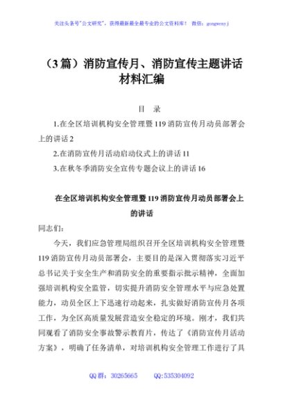 / (3篇)消防宣传月、消防宣传主题讲话材料汇编