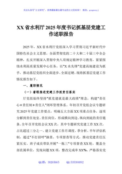 / XX省水利厅2025年度书记抓基层党建工作述职报告