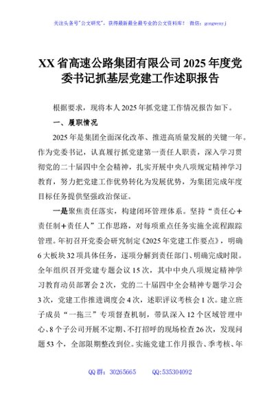 / XX省高速公路集团有限公司2025年度党委书记抓基层党建工作述职报告
