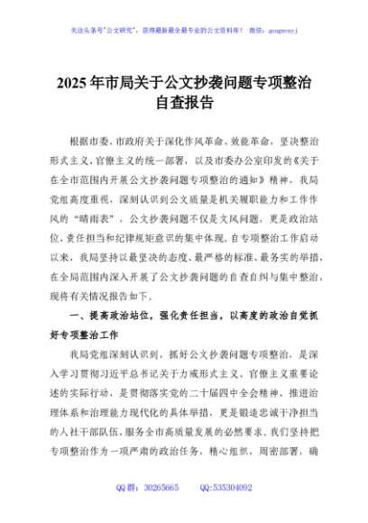 / 2025年市局关于公文抄袭问题专项整治自查报告