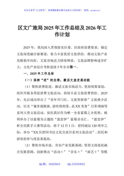 / 区文广旅局2025年工作总结及2026年工作计划