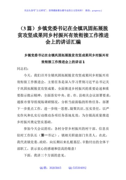 (3篇)乡镇党委书记在全镇巩固拓展脱贫攻坚成果同乡村振兴有效衔接工作推进会上的讲话汇编