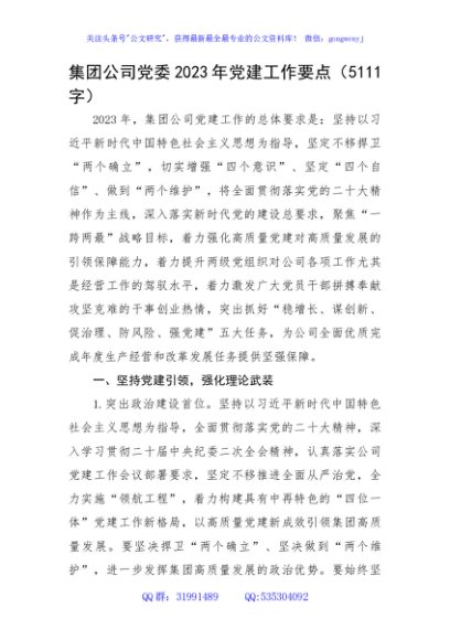/ 国企2023年党建工作要点