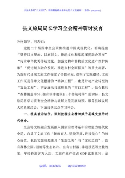 / 县文旅局局长学习全会精神研讨发言