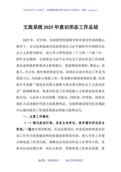 / 文旅系统2025年意识形态工作总结