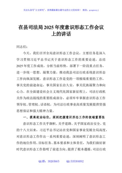 / 在县司法局2025年度意识形态工作会议上的讲话