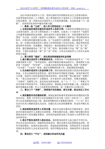 / 2023年全市退役军人工作要点