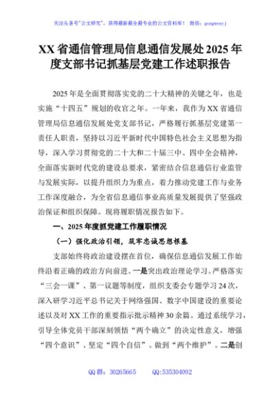 / XX省通信管理局信息通信发展处2025年度支部书记抓基层党建工作述职报告