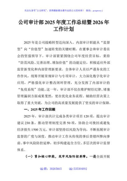 / 公司审计部2025年度工作总结暨2026年工作计划