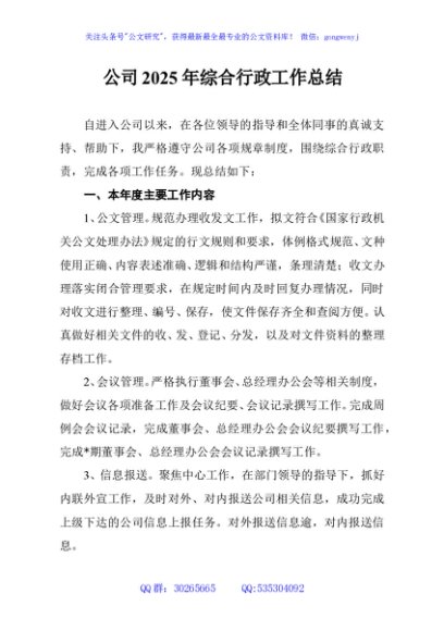 / 公司2025年综合行政工作总结