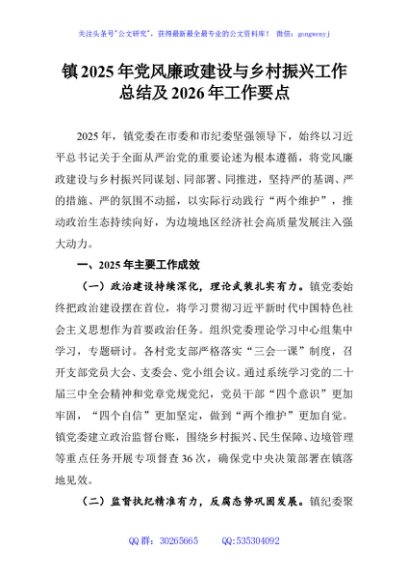 / 镇2025年党风廉政建设与乡村振兴工作总结及2026年工作要点