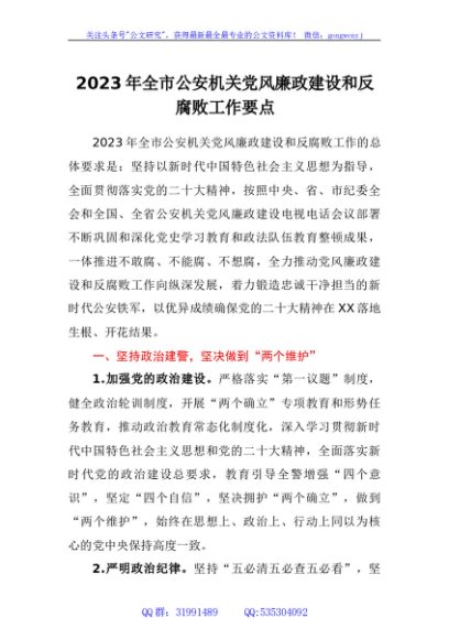 / 2023年全市公安机关党风廉政建设和反腐败工作要点
