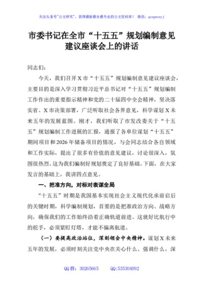 / 市委书记在全市“十五五”规划编制意见建议座谈会上的讲话