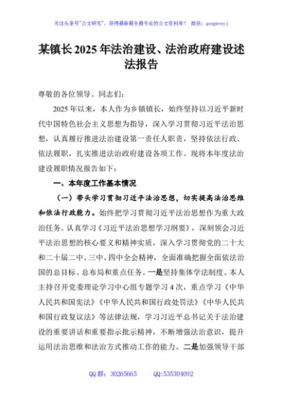 / 某镇长2025年法治建设、法治政府建设述法报告
