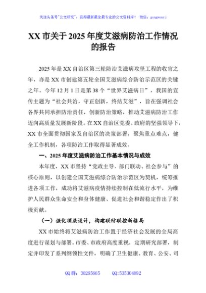 / XX市关于2025年度艾滋病防治工作情况的报告