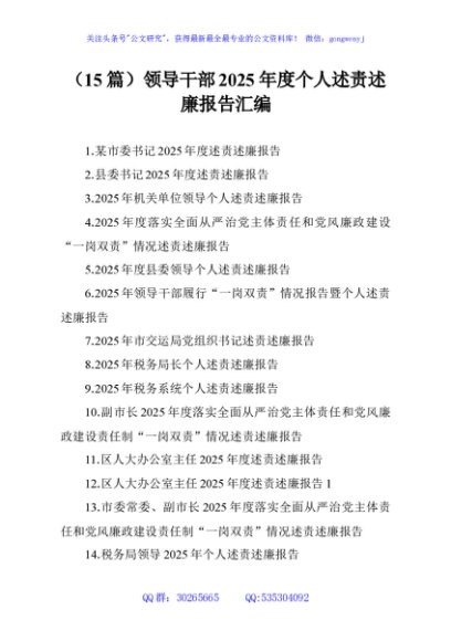 / (15篇)领导干部2025年度个人述责述廉报告汇编