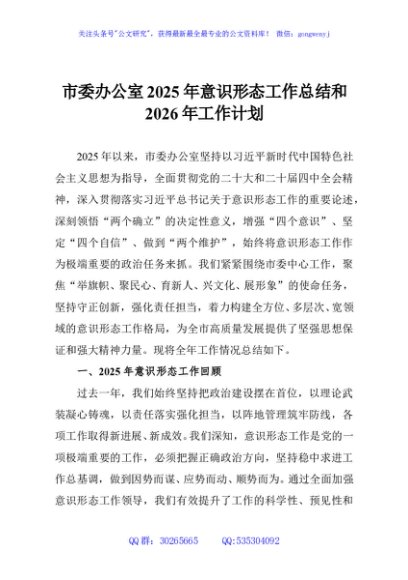 / 市委办公室2025年意识形态工作总结和2026年工作计划
