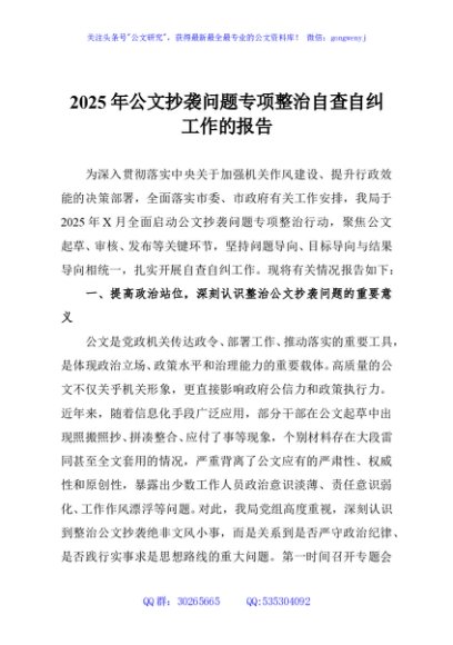 / 2025年公文抄袭问题专项整治自查自纠工作的报告