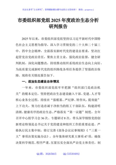 / 市委组织部党组2025年度政治生态分析研判报告