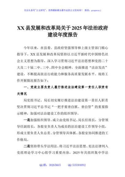 / XX县发展和改革局关于2025年法治政府建设年度报告