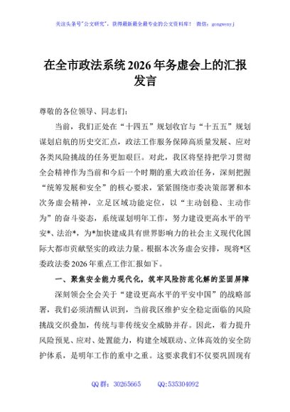 / 在全市政法系统2026年务虚会上的汇报发言
