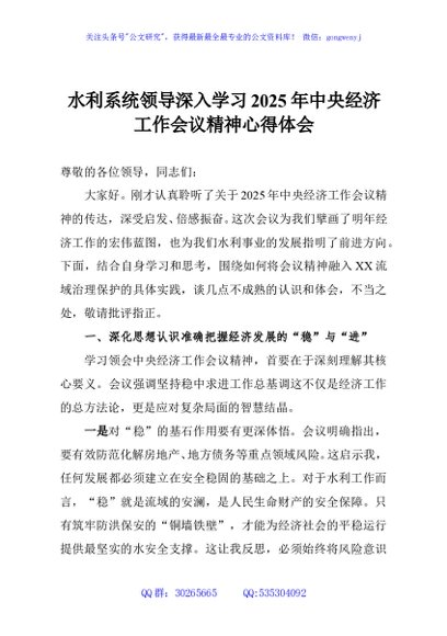 / 水利系统领导深入学习2025年中央经济工作会议精神心得体会