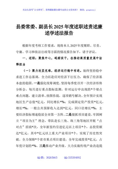 / 县委常委、副县长2025年度述职述责述廉述学述法报告