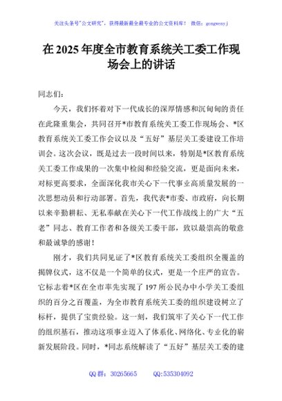 / 在2025年度全市教育系统关工委工作现场会上的讲话