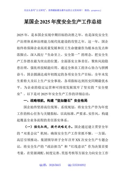 / 某国企2025年度安全生产工作总结