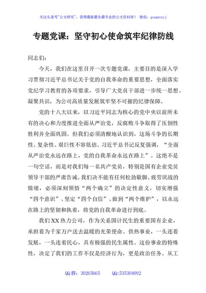 / 专题党课:坚守初心使命筑牢纪律防线
