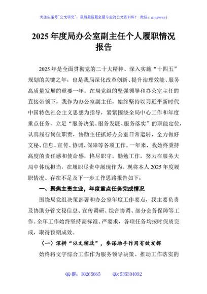 / 2025年度局办公室副主任个人履职情况报告