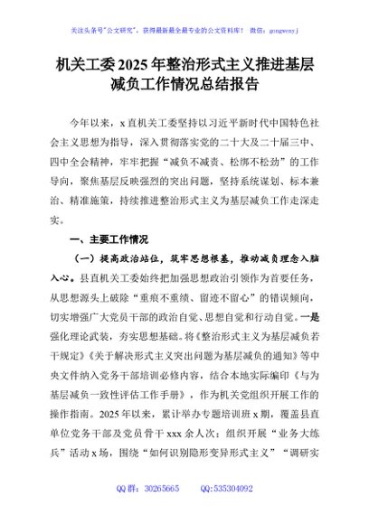 / 机关工委2025年整治形式主义推进基层减负工作情况总结报告