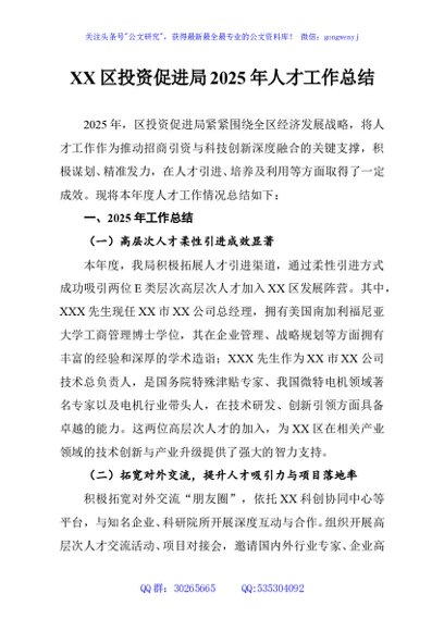 / XX区投资促进局2025年人才工作总结