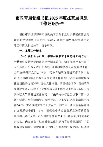 / 市教育局党组书记2025年度抓基层党建工作述职报告