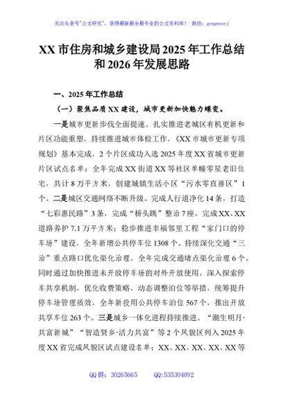 / XX市住房和城乡建设局2025年工作总结和2026年发展思路
