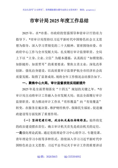市审计局2025年度工作总结