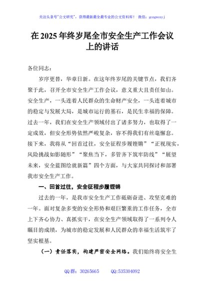 / 在2025年终岁尾全市安全生产工作会议上的讲话
