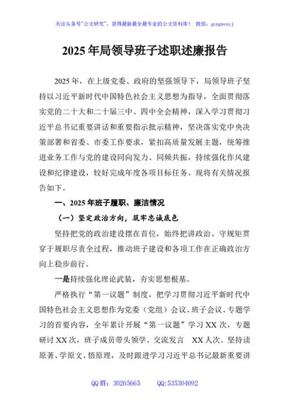 / 2025年局领导班子述职述廉报告
