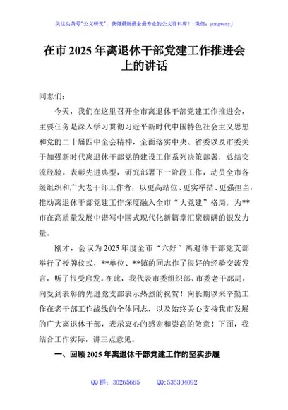 / 在市2025年离退休干部党建工作推进会上的讲话