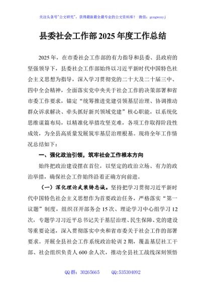 / 县委社会工作部2025年度工作总结