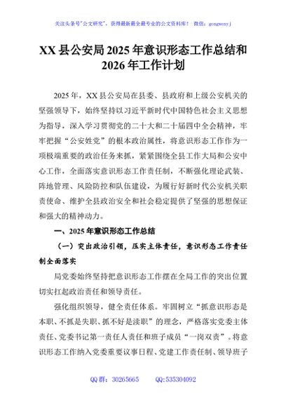 / XX县公安局2025年意识形态工作总结和2026年工作计划