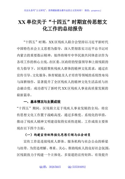 / XX单位关于“十四五”时期宣传思想文化工作的总结报告