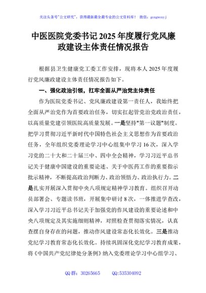 / 中医医院党委书记2025年度履行党风廉政建设主体责任情况报告