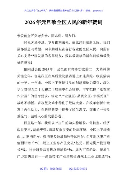 / 2026年元旦致全区人民的新年贺词