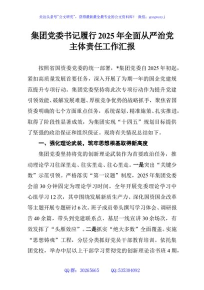 / 集团党委书记履行2025年全面从严治党主体责任工作汇报