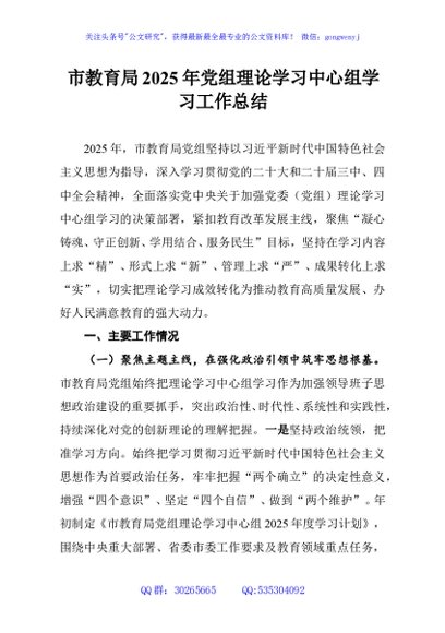 / 市教育局2025年党组理论学习中心组学习工作总结