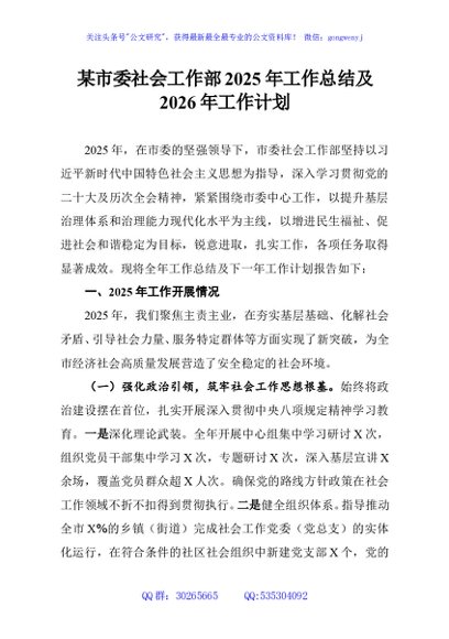 / 某市委社会工作部2025年工作总结及2026年工作计划